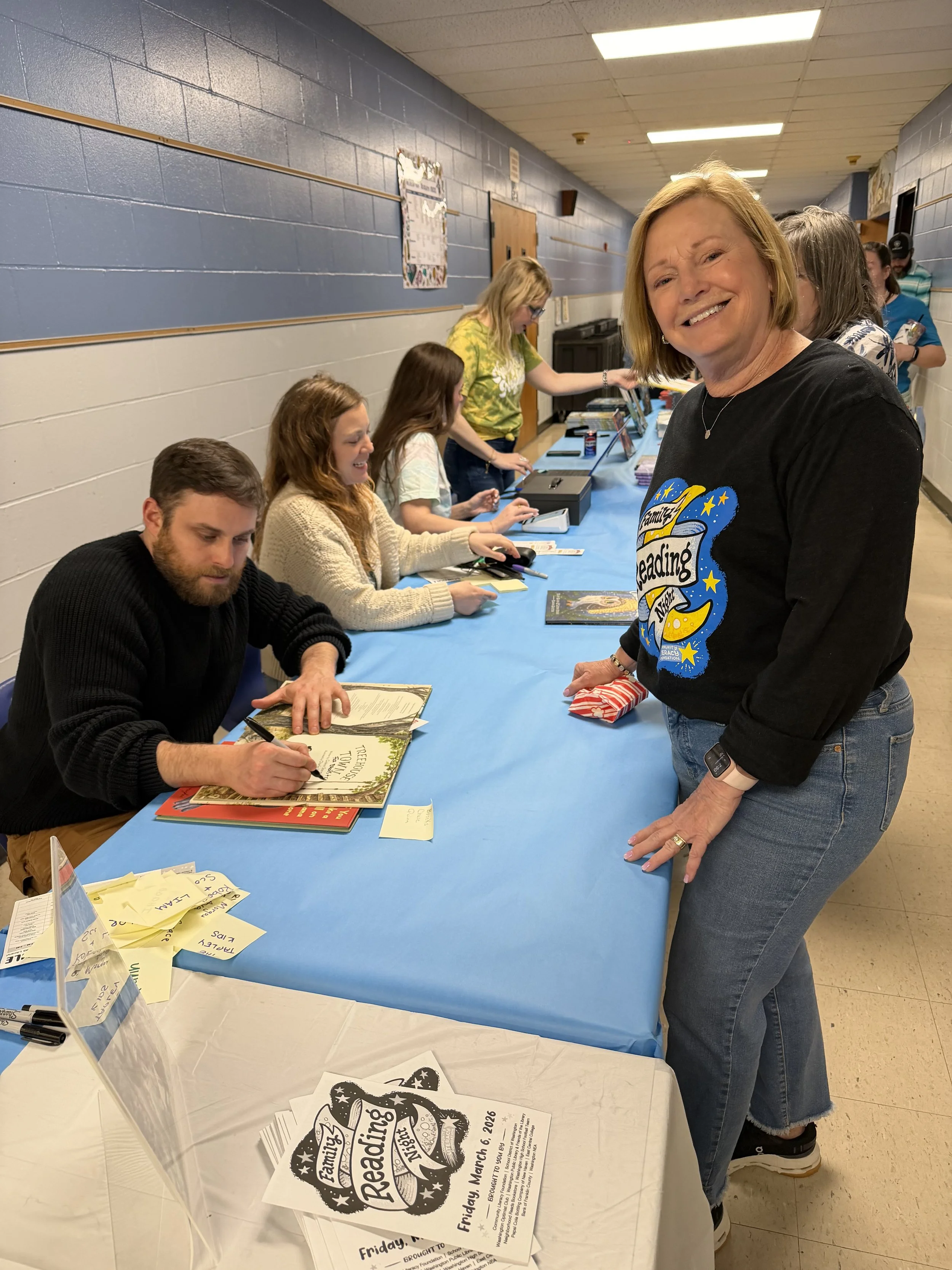 We extend our heartfelt gratitude to our 26th annual special guest author, Gideon Sterer, whose imaginative stories inspire readers of all ages. We also want to thank the many volunteers. Family Reading Night is not just a community event — it’s an event that takes the community to create.